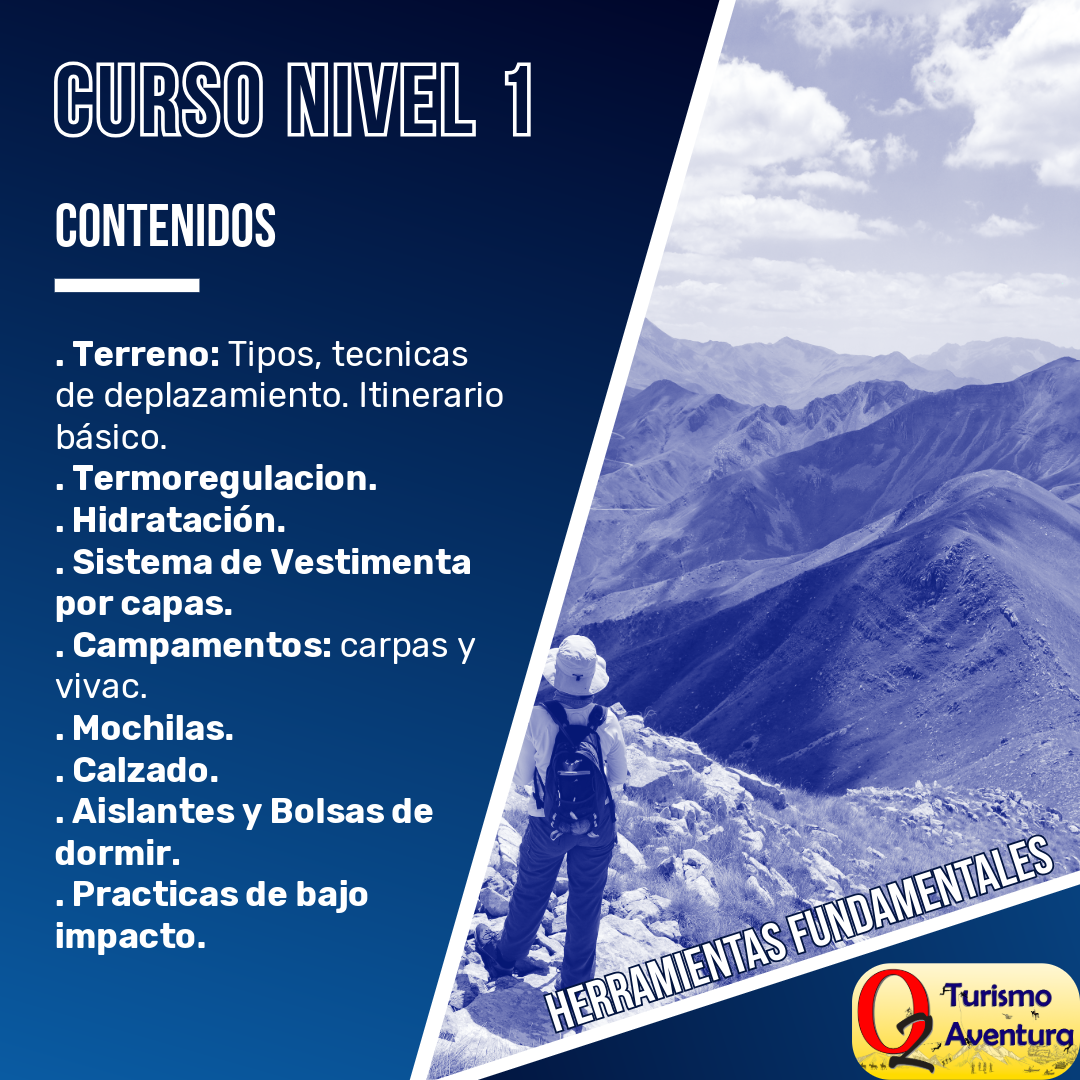 El nivel 1 está pensado para aquellos que no tienen ningún o muy poco conocimiento sobre el equipo necesario, la forma de iniciar el armado de un itinerario y como desenvolverse en el terreno sin dejar huella.